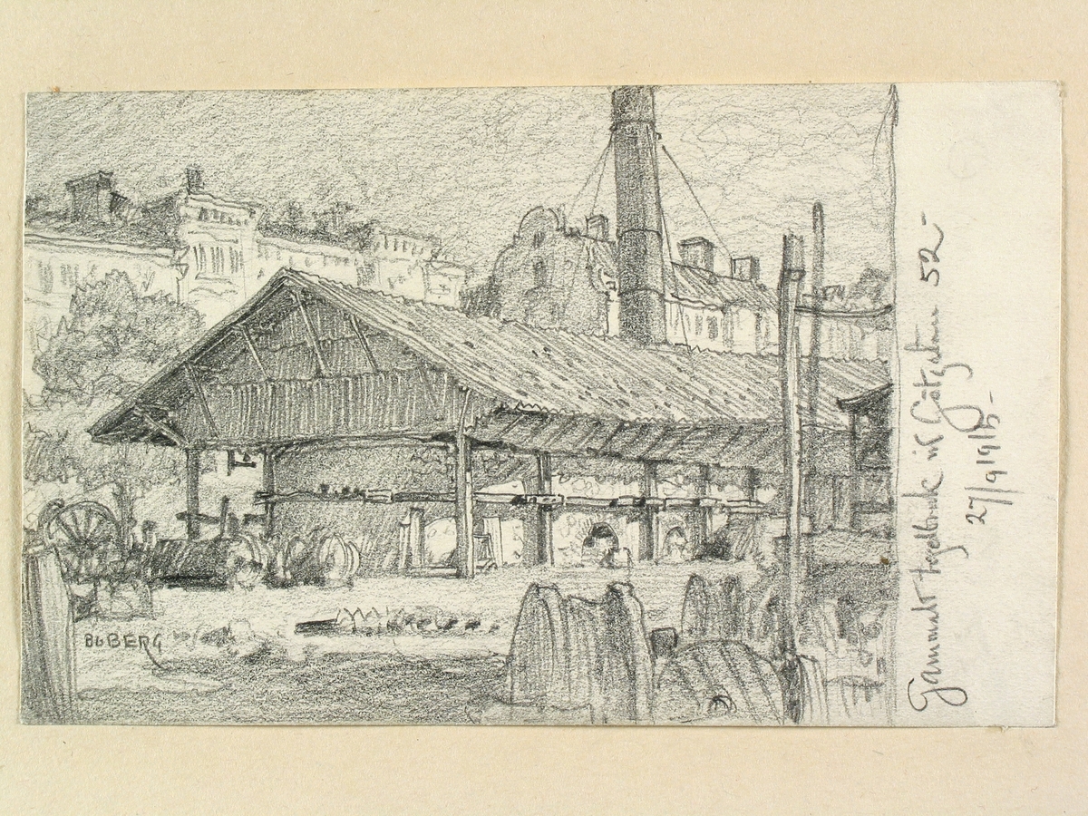 Teckning av Ferdinand Boberg. Stockholm, Söder, Kv. Planet, Götgatan 52