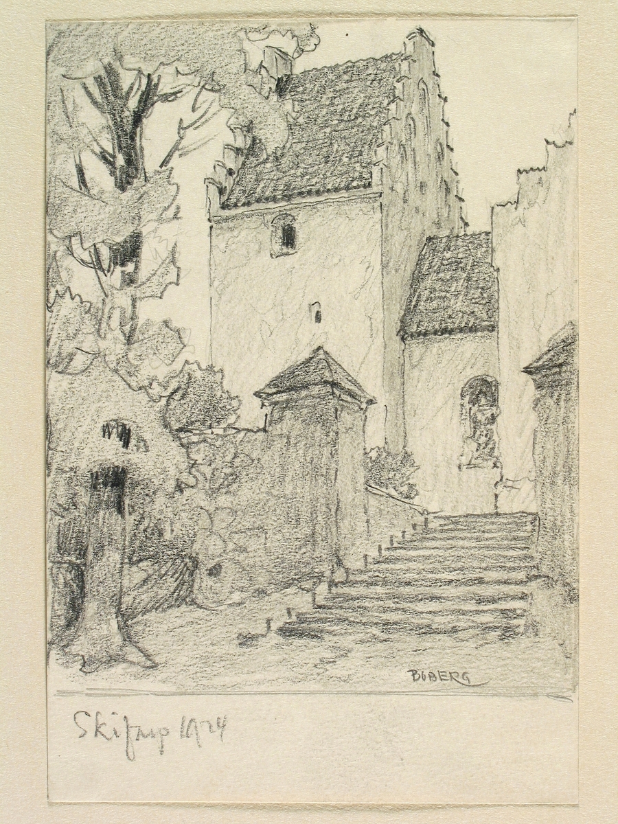 Teckning av Ferdinand Boberg. Skåne, Vemmenhögs hd., Skivarps k:a