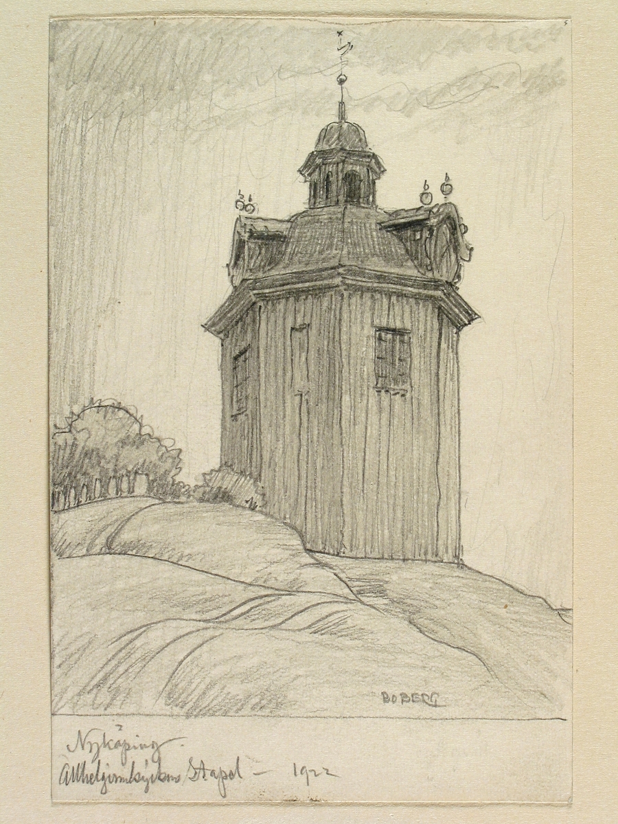 Teckning av Ferdinand Boberg. Nyköping, Allhelgonakyrkans stapel