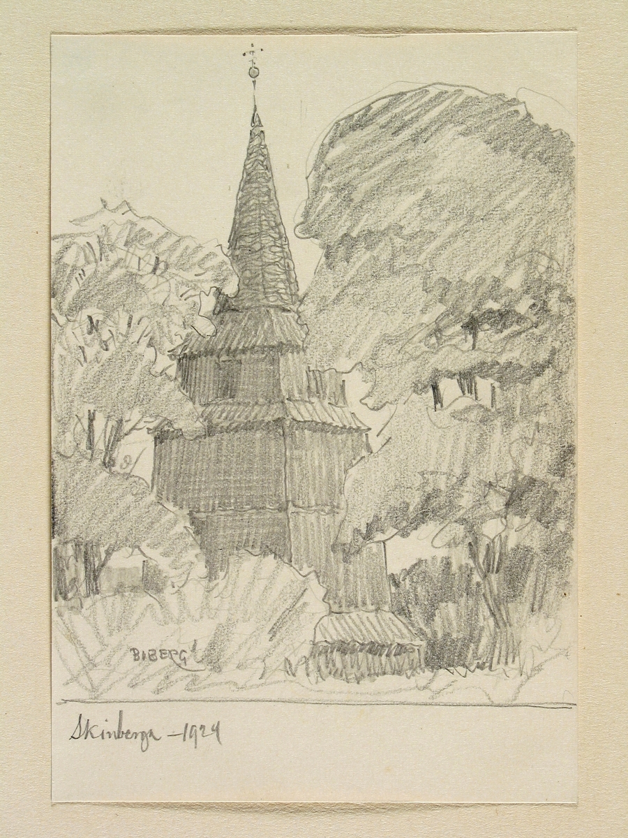 Teckning av Ferdinand Boberg. Östergötland, Hammarkinds hd., Skinberga kyrka