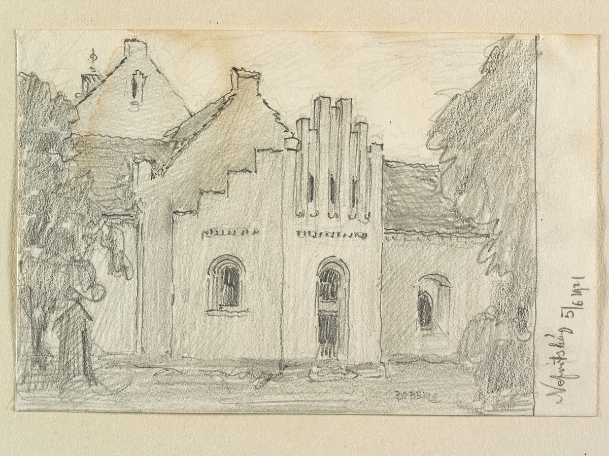 Teckning av Ferdinand Boberg. Skåne , Bara hd., Nevitshögs kyrka