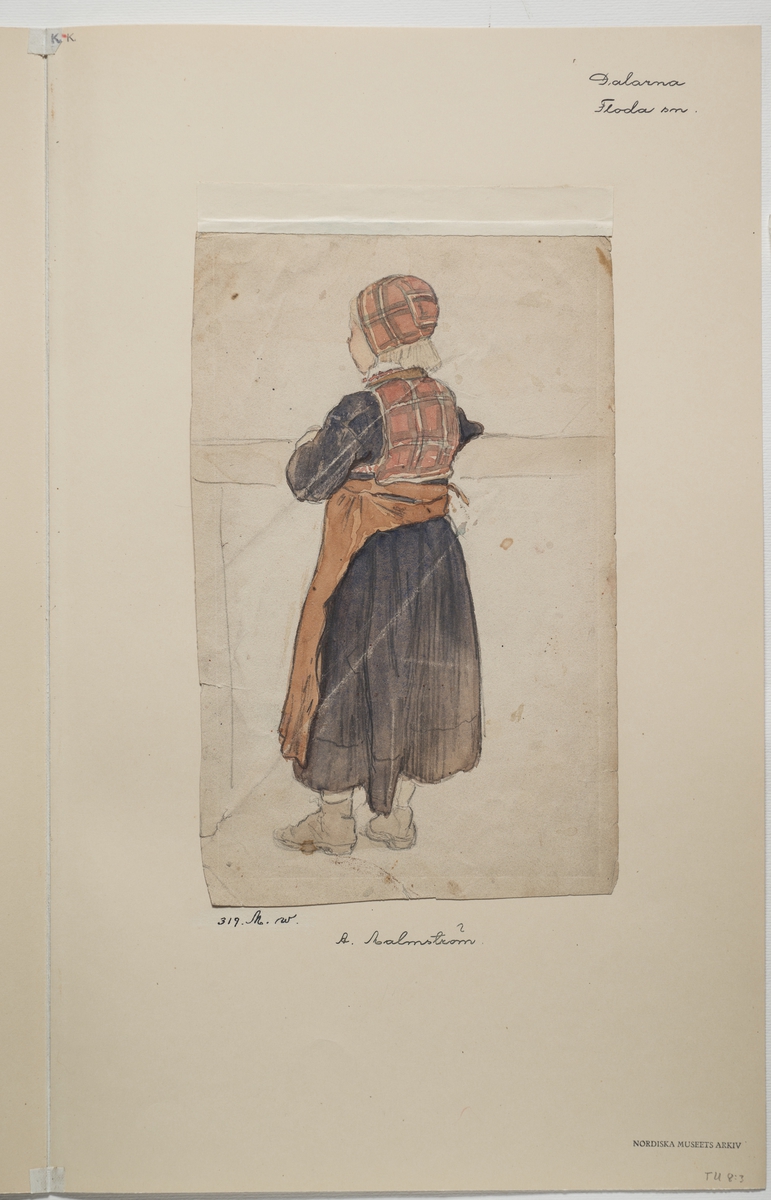 Akvarellerad teckning av pojke i blåkolt. Dalarna.