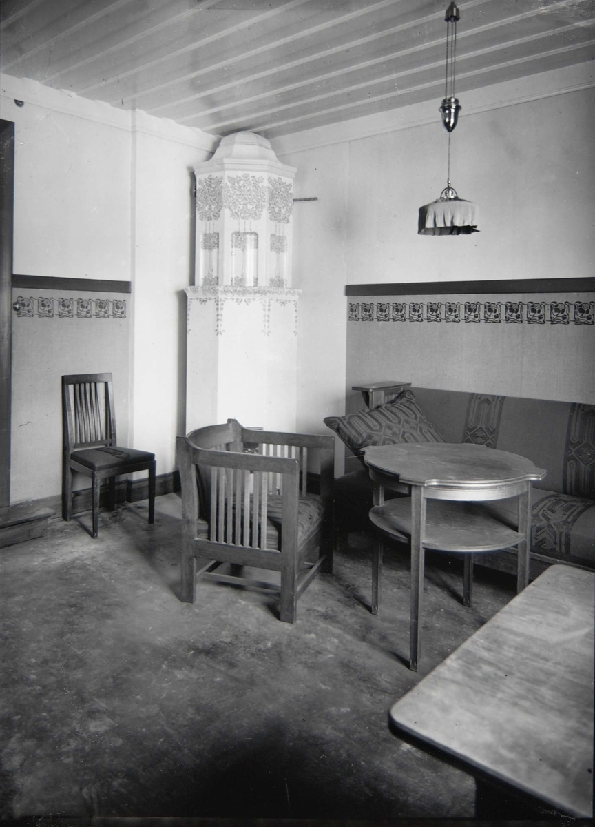 Interiör från Pressens villa, Källvägen 2, Saltsjöbaden, Nacka. Herrummet. Arkitekt Carl Westman, 1902.