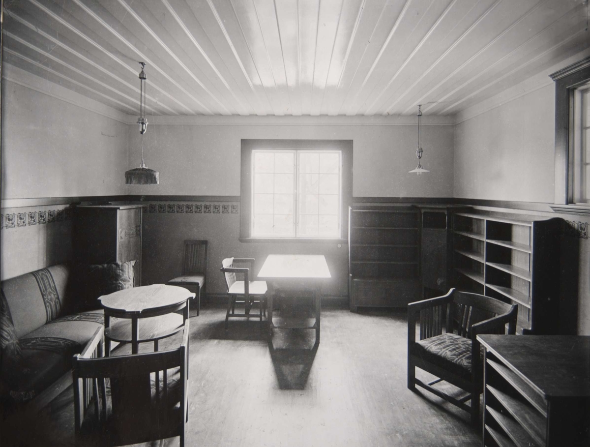 Interiör från Pressens villa, Källvägen 2, Saltsjöbaden, Nacka. Herrummet. Arkitekt Carl Westman, 1902.