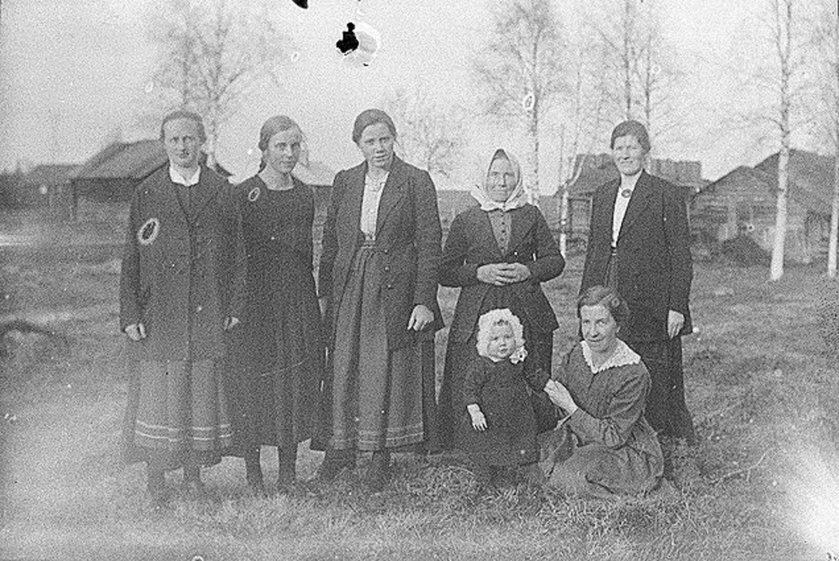 Grupporträtt av kvinnor utomhus. Lima, Dalarna.