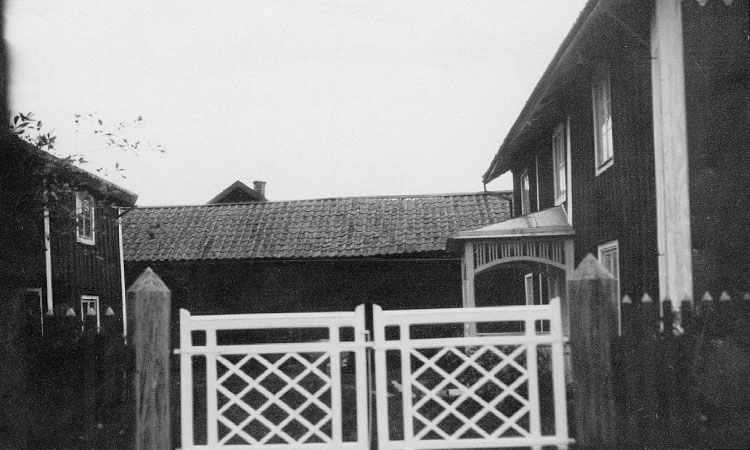 Näst östligaster gården i Köpsta by. Mangården, sedd från bygatan. Skiljes från ladugårdstomten genom en bod med port ( skymmes av grinden)