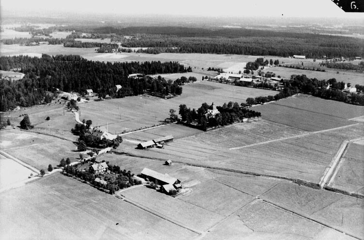 Flygfoto över Ervalla, bostadshus och byggnader.