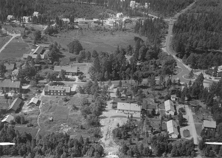 Titel: Flygfoto över Svartå. Bilden tagen vykort. Förlag: Gustav Jansson, Svartå.