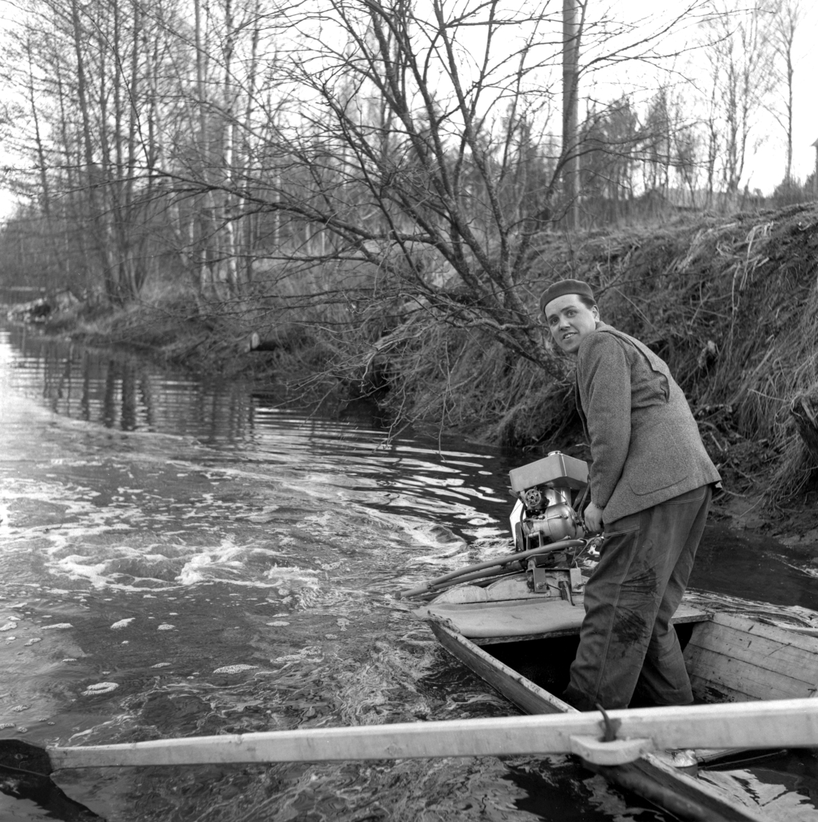 Titel: Båttävling på Ljusnaren, en man i en båt. Bertil Dammström, Vintersvik.
