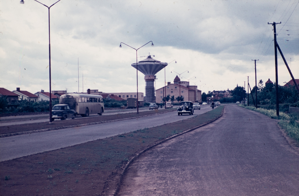 Norra infarten till Örebro, vattentornet Svampen under byggnation.