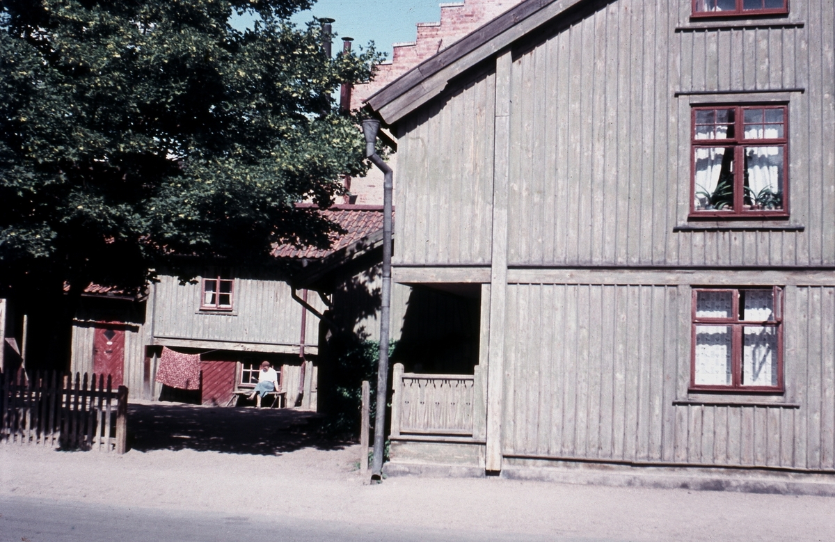 I fonden syns trappstegsgaveln på Drottninggatan 56, Ekendahlska magasinet, som kallades också gamla ostlagret.