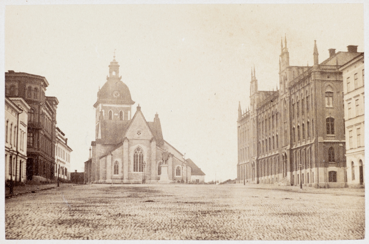 Bilden är troligen tagen i slutet av 1860-talet. Engelbrektsstatyn avtäcktes 1865.
