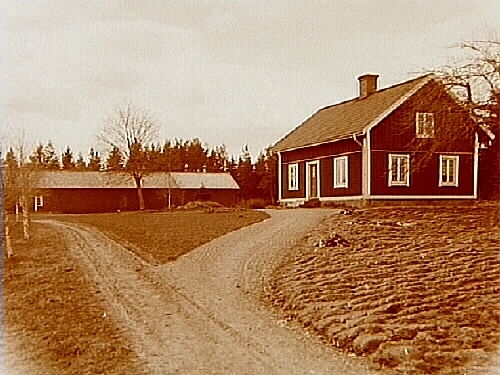 Envånings bostadshus med inredd vind, ekonomibyggnad.