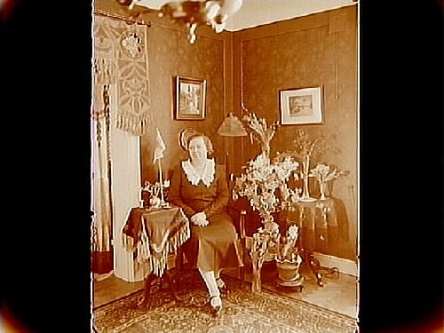 Rumsinteriör, en kvinna.