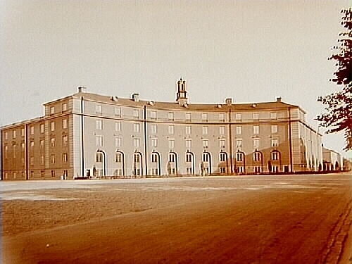 Fyra och en halvvånings skolbyggnad med litet torn på taket, Engelbrektsskolan, folkskola.