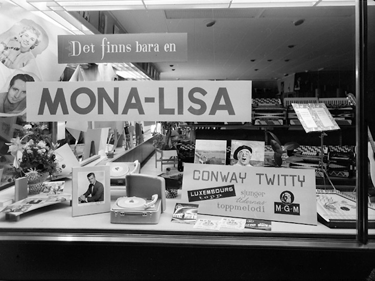 Titel: Bohlins Musik, affärsbyggnad, skyltfönster.