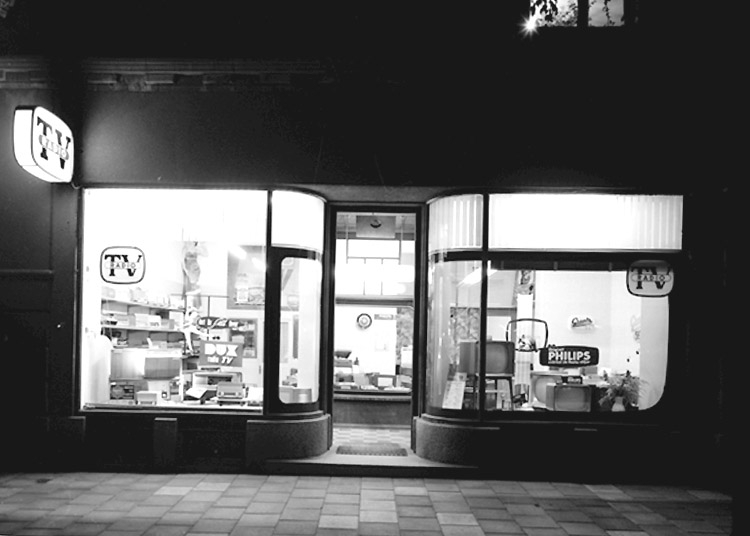 TV-Radioboden, affärsbyggnad, skyltfönster.