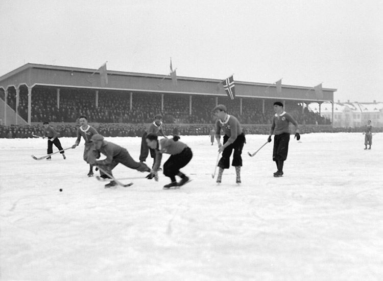 Bandymatch, landskampen Sverige-Norge på Eyravallen.