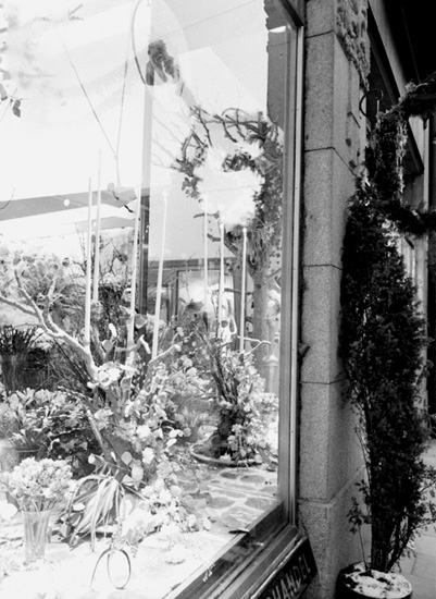 Stora Hyddans Blomsterhandel, skyltfönster.