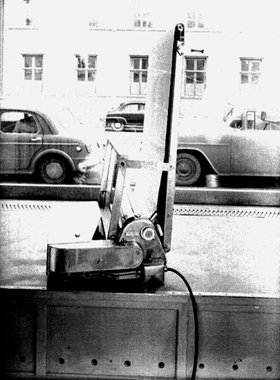 Titel: Bagerimaskin. Byggnader och bilar i bakgrunden. Blomé & Co.