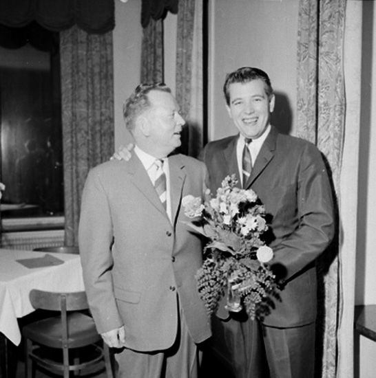 Titel: Prisutdelning på restaurang City, två män. Wigrell & Co.
