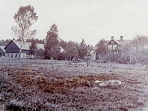 En och en halvvånings bostadshus med frontespis, förstuga och förstubro. Ekonomibyggnader.