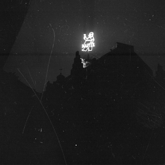Titel: "Master" skylt. Bostadshus. Roos Neon