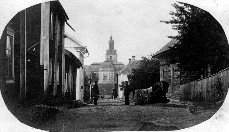 Gatuscen med Landskyrkan i bakgrunden.