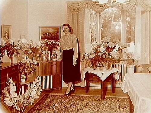 Rumsinteriör, en kvinna.