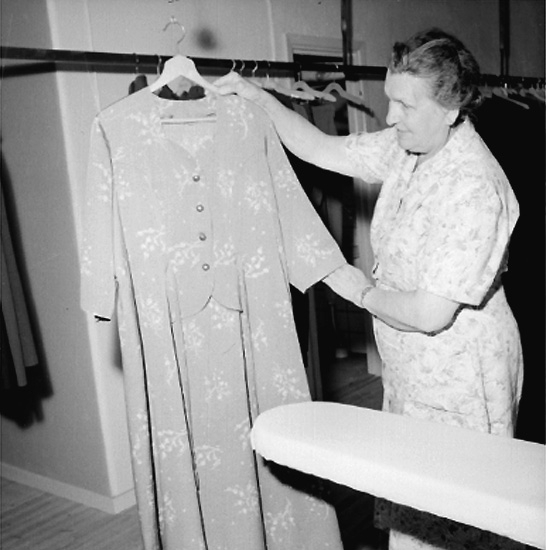 Titel: Bergeå Kemiska, kemtvätt, interiör, en kvinna.