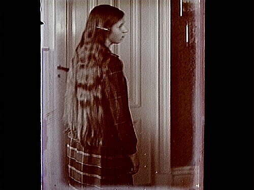 En flicka med långt hår.