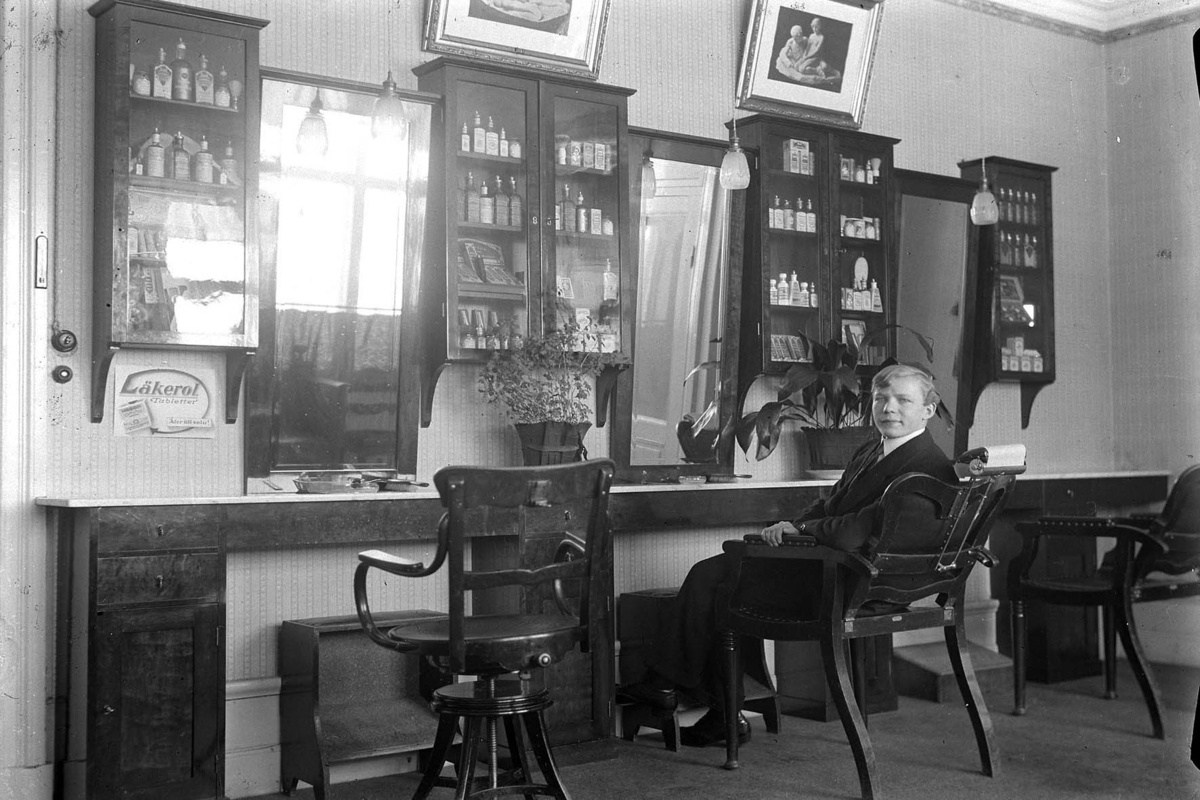 Erik Herman Anderssons frisersalong (rakstuga) i Norberg, interiör.