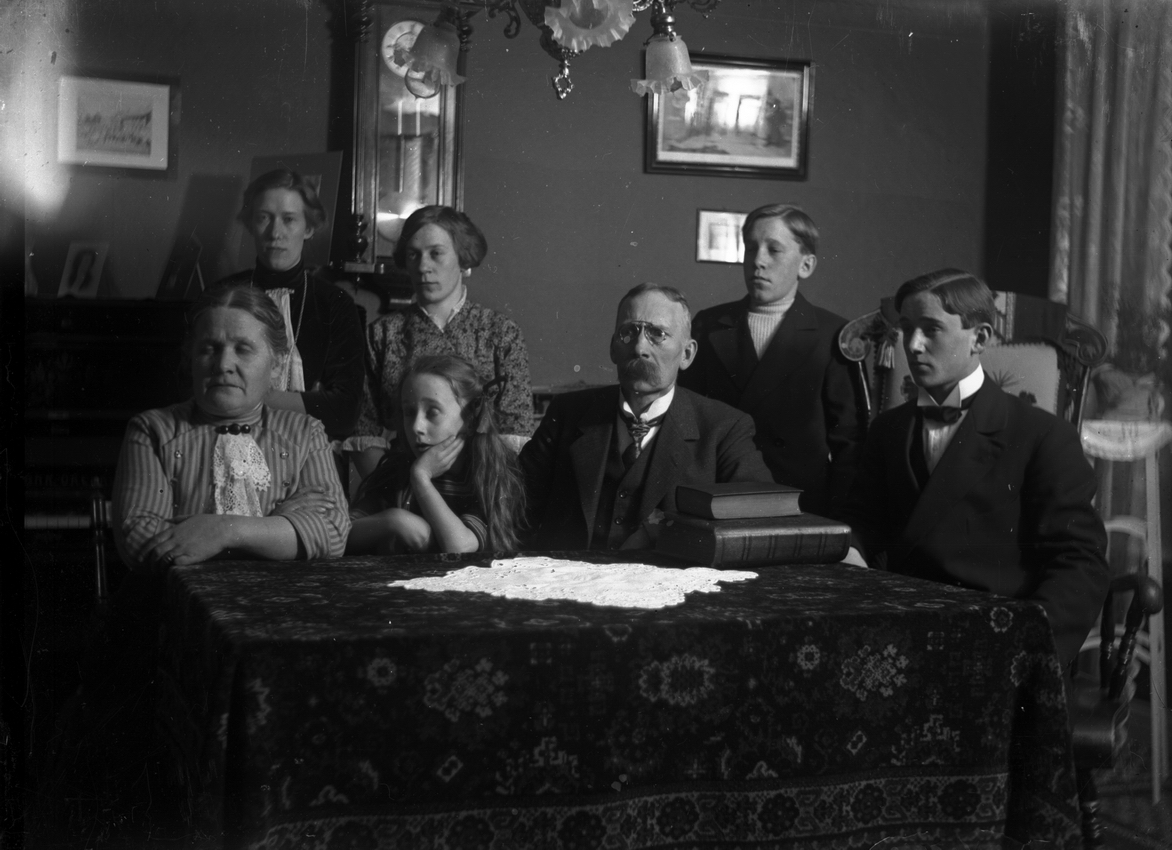 Från vänster: Eva Sofia Pettersson (givarens farmor), Ingrid Pettersson, Ester Pettersson, Kerstin Pettersson (givarens fastrar), Anders Johan Pettersson (givarens farfar), Harald Pettersson (givarens pappa) och Martin Pettersson (givarens farbror).