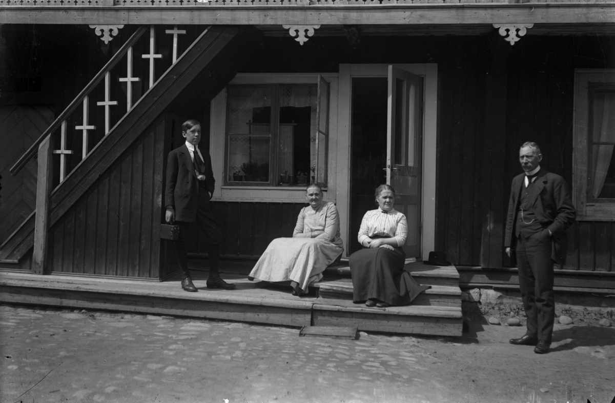 Från vänster: Harald Pettersson (givarens pappa), ej namngiven kvinna, Eva Sofia Pettersson (givarens farmor) och Anders Johan Pettersson (givarens farfar).