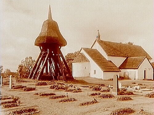 Gökhems kyrka och klockstapeln.