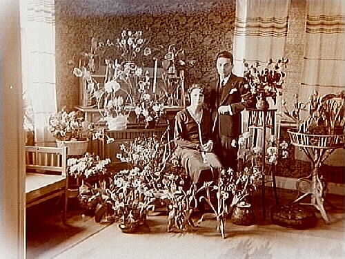 Titel: Rumsinteriör, en man och en kvinna. C.G. Andersson