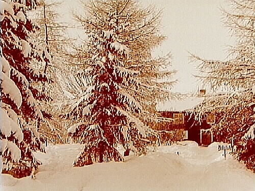 Tvåvånings bostadshus, vinterbild.
