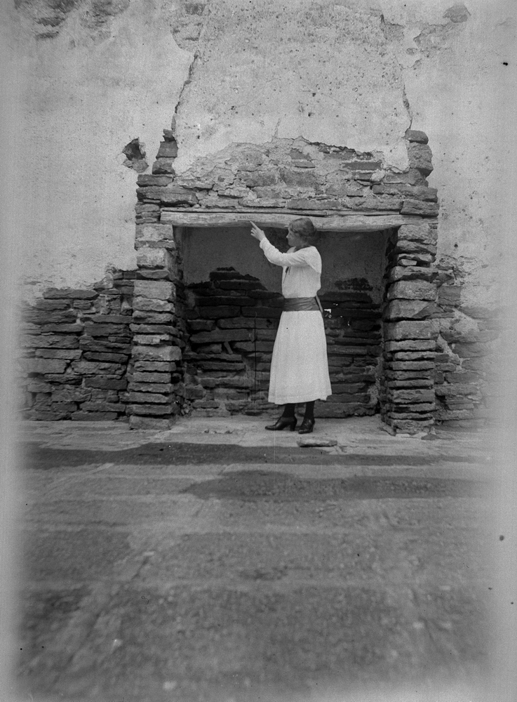 En kvinna vid Borgholms slottsruin.