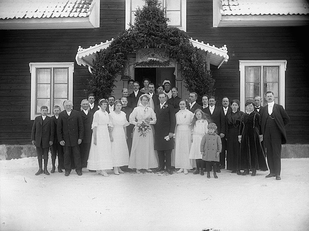 Bröllop, brudpar och bröllopsgäster, Hugo och Elsa.