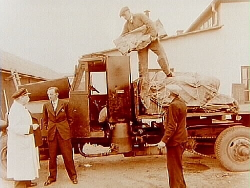 Gengasdriven lastbil, 4 män.