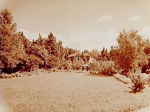 Envånings villa med inredd vind, frontespis, burspråk och balkong, brutet tak.