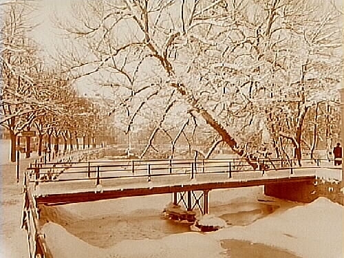 Gångbron mellan Engelbrektsgatan och Strömparterren, vinterbild.