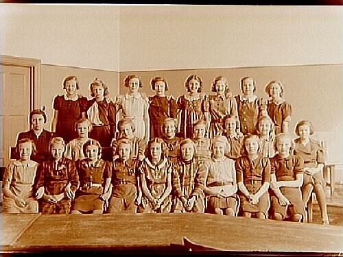 Vasaskolan, klassrumsinteriör, 24 flickor med lärarinna fru Lisa Dahlstedt, sal 20.