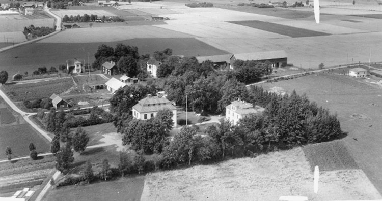 Flygfoto över kyrkskolan, Stora Mellösa.