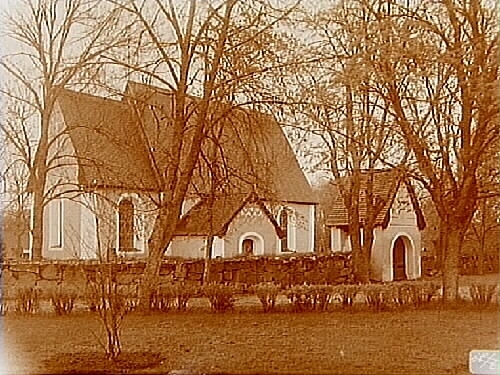 Stavby kyrka, kyrkobyggnad och stiglucka.