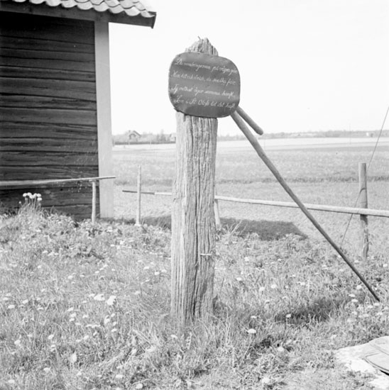 Sankt Olofskällan i Hardemo den 24 maj 1937. På kopparplåten på stocken invid vattenkällan står det skrivet: "Du vandringsman på vägen går. Kom hit och drick, du svalka får.Ty vattnet äger samma kraft, som i St Olofs tid det haft." Källan ligger vid vägen genom Hardemo; cirka trehundra meter norr om Hardemo kyrka. Bakom källan syns ett litet hus.