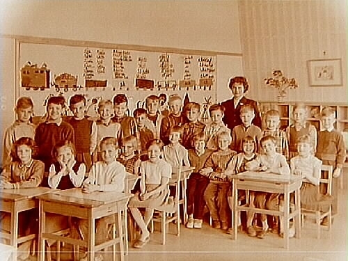 25 skolbarn och lärarinna fröken Astrid Lindlöf.