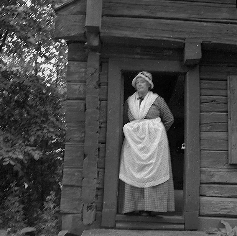 Cajsa Wargs huset, exteriör, en kvinna. Fru Stylin som Cajsa Warg.
