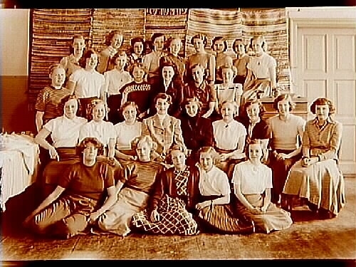 Vasaskolan, klassrumsinteriör, 29 flickor med lärarinna fru Inga Szewczyk, klass 8b, sal 18.
