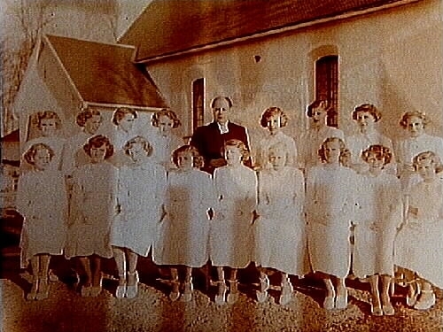 Konfirmander, 17 flickor och kyrkoherde Bror Strömberg.